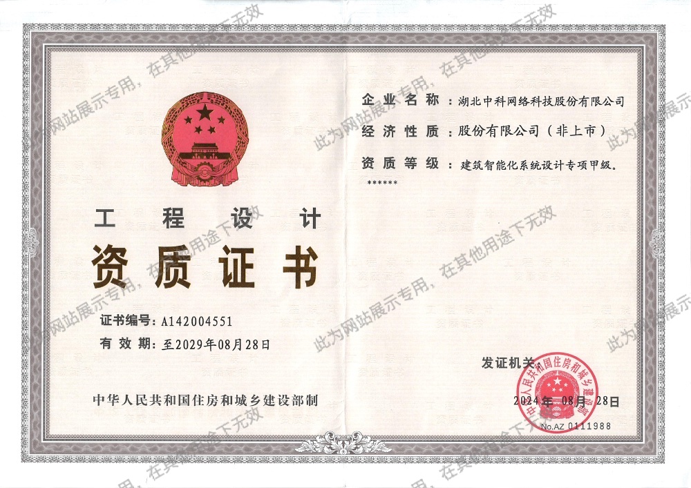 • 國家建筑智能化系統(tǒng)設計專項甲級資質(zhì)