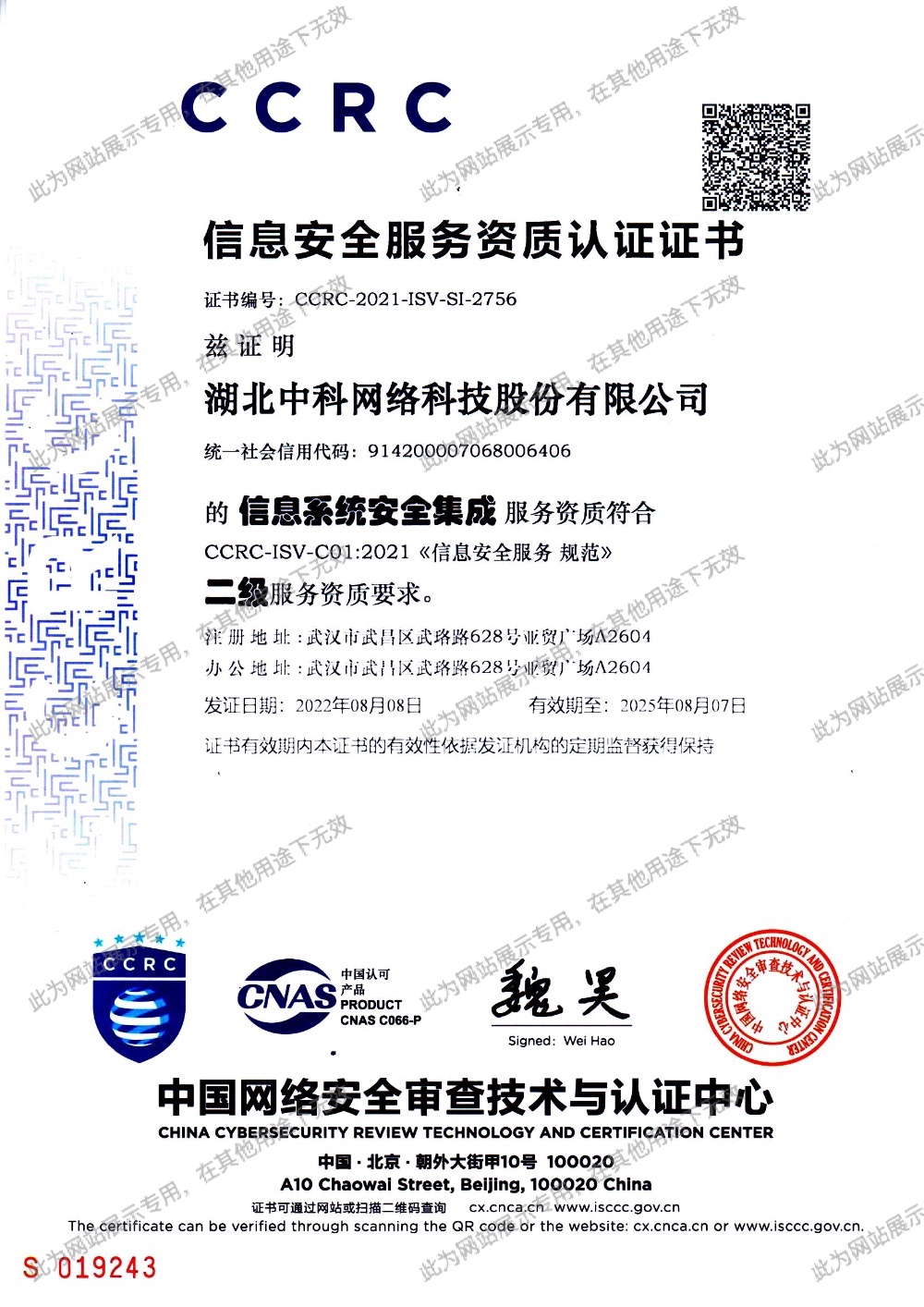 • CCRC 信息系統(tǒng)安全服務二級資質(zhì)